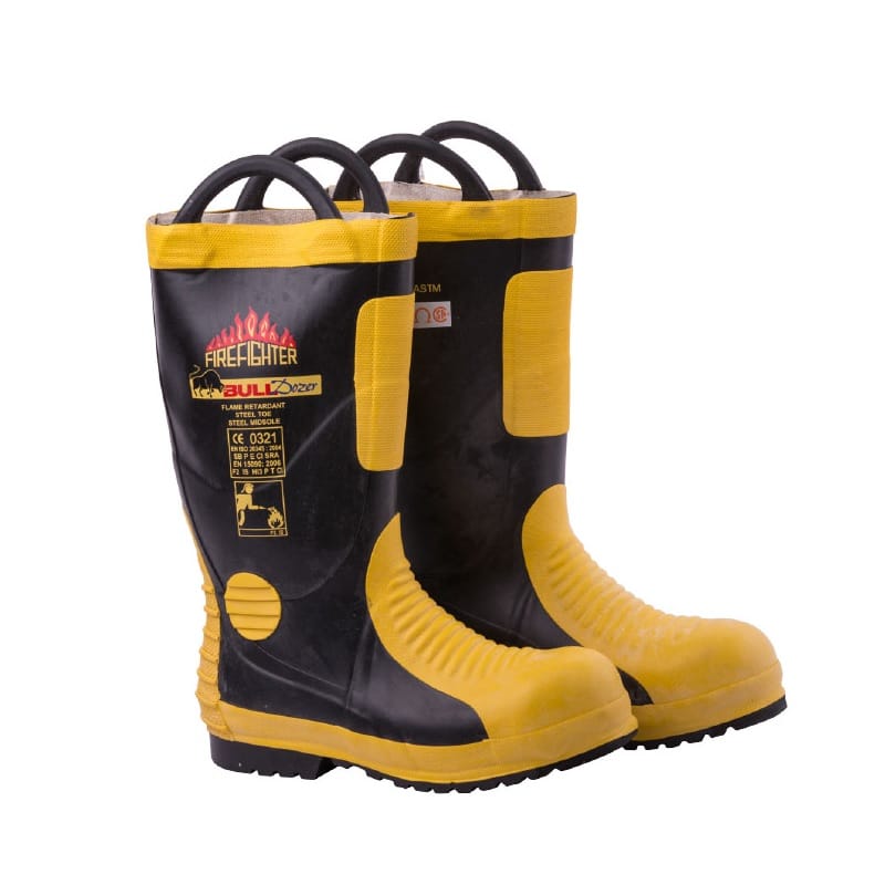 بلدوزر BD 9788 أحذية رجال الإطفاء المصنعة باستخدام كل من مواد الستايرين المطاط الطبيعي 65 ٪. بوتادين المطاط و 5 ٪ المطاط كلوروبرين ، 80 ٪ المطاط كلوروبرين و 20 ٪ المطاط النتريل.