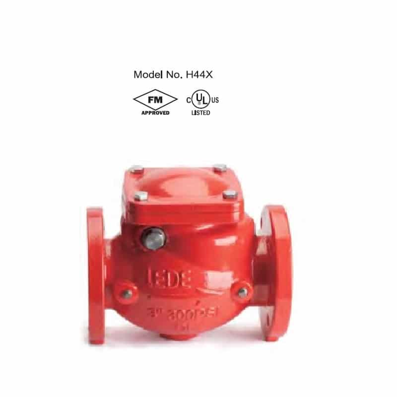 صمام فحص / عدم رجوع من نوع LED أرجوحة 4 إنش 100 مم ، مع هيكل مشدود ، الهيكل مصنوع من حديد الدكتايل ، حلقة مقعد من البرونز ، قرص من حديد الدكتايل ، ذراع كلاب حديد من حديد الدكتايل ، غطاء من حديد الدكتايل ، غطاء جلدي من البرونز.
