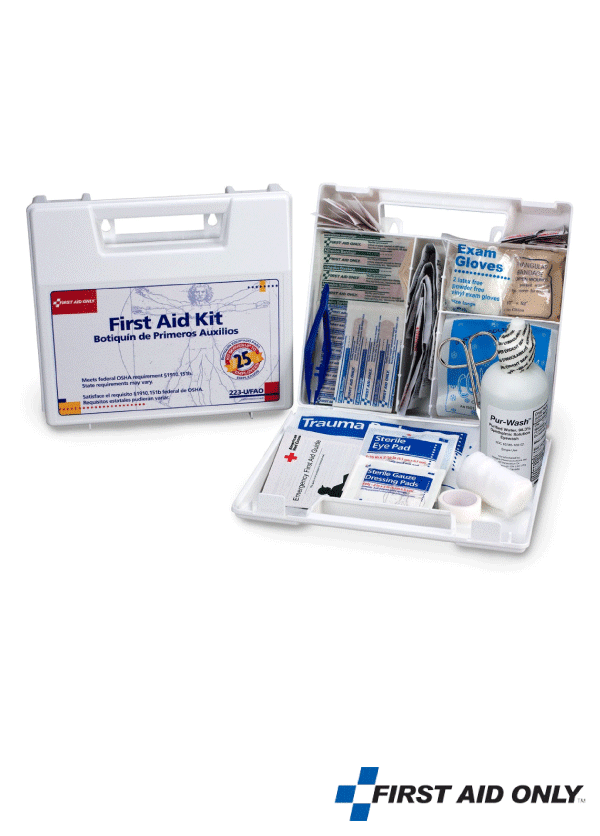 تعتبر مجموعة الإسعافات الأولية المكونة من 107 جزء مثالية للمقاولين أو مركبات الأسطول أو مواقع العمل أو الشركات الصغيرة التي يعمل بها ما يصل إلى 25 موظفًا. يفي بتوصيات OSHA الفيدرالية ويحمل 17 منتجًا حرجًا بما في ذلك 4 أوقية. غسل العين. العلبة البلاستيكية المقسمة المقاومة للماء قابلة للتركيب على الحائط ولكن لديها مقبض لسهولة الحمل.