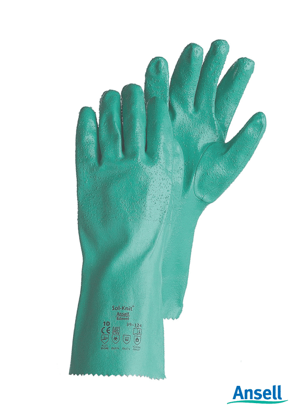 Ansell Sol-Knit يوفر الحماية الميكانيكية والكيميائية للخدمة الشاقة لمجموعة واسعة من بيئات العمل والراحة القصوى للخدمة الشاقة.