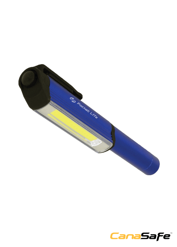 Durable Aluminum Canasafe Pocket Lite, 220 Lumens LED Light, Round Magnetic Base, 180 ° Rotating Magnetic Pocket Clip, 3AAA Batteries (Included) 6.25? Q long. 63? Deep x1 diameter.