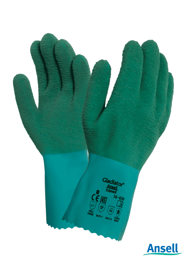 Ansell GLADIATOR مقص وخياطة ، بطانة من القطن Interlock ، طلاء طبيعي من المطاط اللاتكس ، تشطيب كامل المغلفة ، صفعة Gaunlet ، أخضر ، 310 مم.