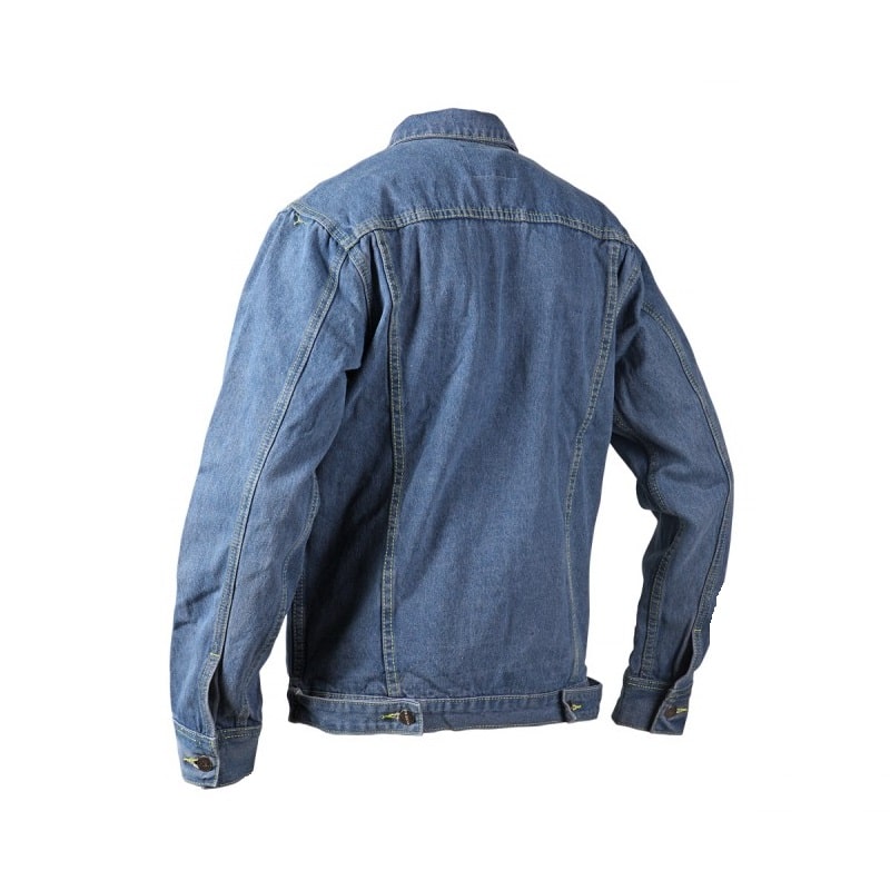 سترة لحام الدنيم ، و قسط الوزن الثقيل والتصميم التقليدي. للعمل مع الأناقة والراحة.