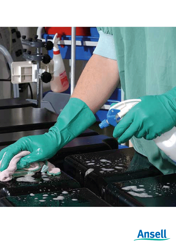 طلاء Ansell Solvex Nitrile ، بطانة متدفق ، صفعة Gaunlet ، معينات عكسية ، سماكة 0.425 مم ، طول 380 مم- أخضر.