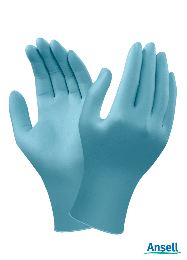 Ansell TOUCHNTUFF خالي من مسحوق ، طلاء النتريل ، قبضة أطراف الأصابع ، سمك 0.10 مم. طول 240 مم ، أزرق فاتح.