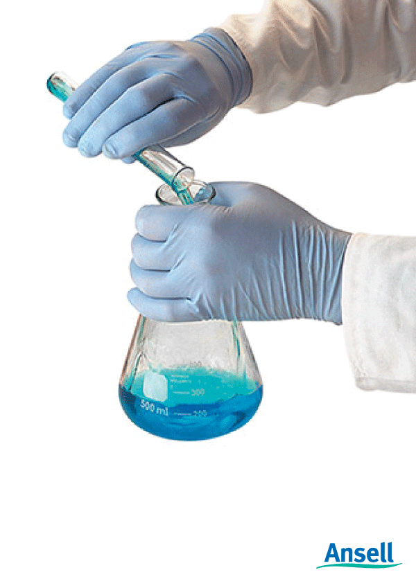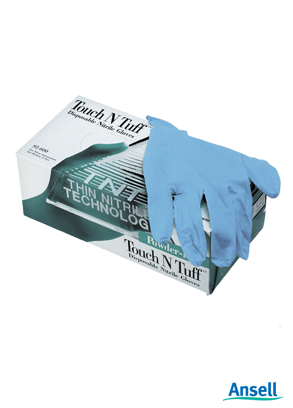 Ansell VERSATOUCH النتريل المضحكة. استخدام فردى. خالي من المسحوق محكم أطراف الأصابع سمك 0.075 مم. طول 240 مم أزرق فاتح يباع لكل صندوق.