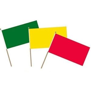 AED 262.50 VAT includedTraffic Light Hand Waving Flags – Pack of 10 Pcs, Yellow / Green / Red