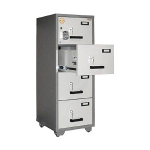 A fire-resistant cabinet safe protects documents and valuables from fire. These cabinets are made with materials that can handle high temperatures for a certain time, keeping your items safe during a fire.The cabinets have multiple drawers, making it easier to store and organize documents. Some models have both digital and keylock options, giving you different ways to lock the cabinet. They also come in different sizes, allowing for storage of various items, from important documents to smaller valuables.