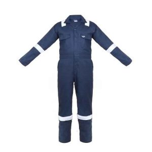 AED 3,937.50 VAT includedVaultex VNR Fire-Retardant Coverall With Non-FR Reflective Tape – 230 Gsm Navy Blue