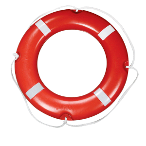 2.5 Kg Lifebuoy Ring with Grab line & Solas Retro Reflective Tapes lifebuoy usually is ring-shaped or horseshoe-shaped and has a connecting line allowing the casualty to be pulled to the rescuer. They are carried by ships and are also located beside bodies of water that have the depth or potential to drown someone. Often colored white and bright red to be seen from great distances and in bad weather or light conditions