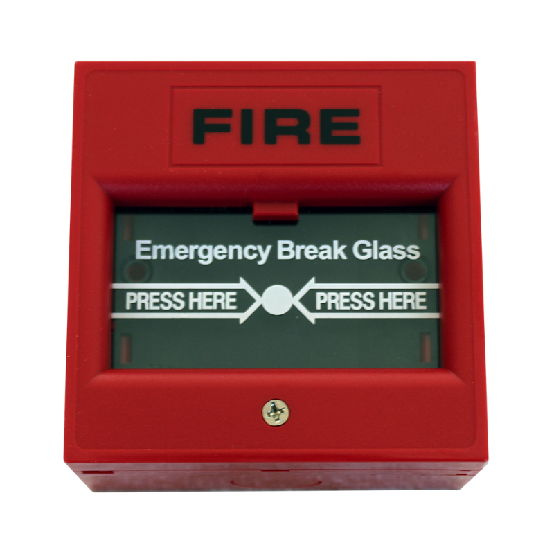 This 8″×8″ (200×200mm) break glass unit features a tempered glass panel with brass hammer, steel enclosure (1.2mm thickness), and universal mounting holes. Includes “FIRE” label in white lettering and complies with BS EN 54-11 standards for manual call points.