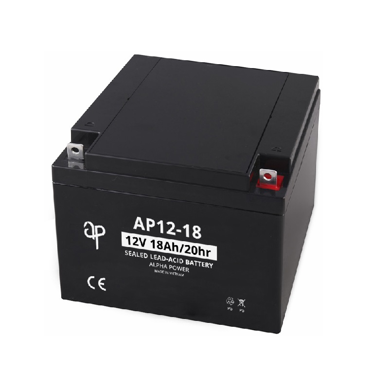Alpha Power AP12-18 [12V 18Ah] VRLA AGM Battery is a Lead Acid rechargeable battery. The dilute sulfuric acid electrolyte is absorbed by separators and plates and thus immobilized. Should the battery be accidentally overcharged producing hydrogen and oxygen, special one-way valves allow the gases to escape thus avoiding excessive pressure build-up. Otherwise, the battery is completely sealed and is, therefore, maintenance-free, leak-proof, and usable in any position.