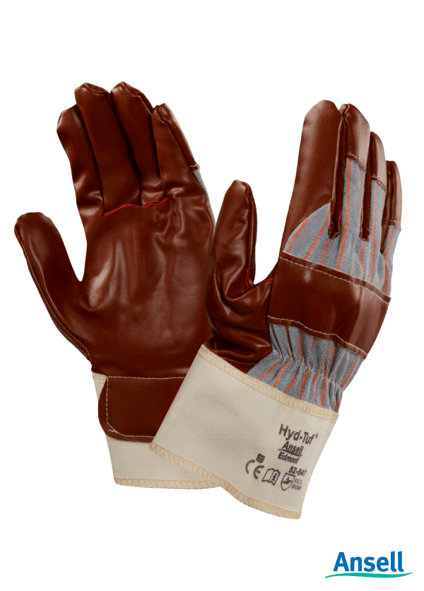 Ansell Hydtuf 52-547 Nitrile Impregnated Coating on a Jersey Liner Supersedes the classic leather general purpose glove in medium-duty applications. More flexible, more comfortable, far more hard-wearing. High-performance nitrile impregnation. Offers superior resistance to abrasion and good protection against snags, cuts, and puncture.