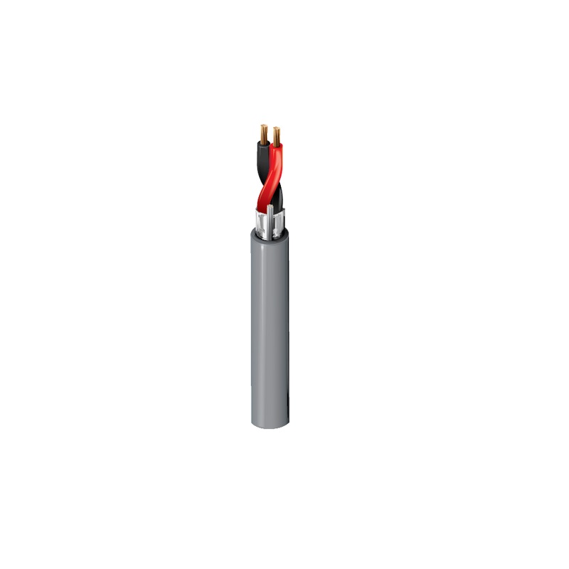 Security & Commercial Audio Cable, Riser-CMR, 2-18 AWG stranded bare copper conductors with polypropylene insulation, Beldfoil® shield and PVC jacket with ripcord.