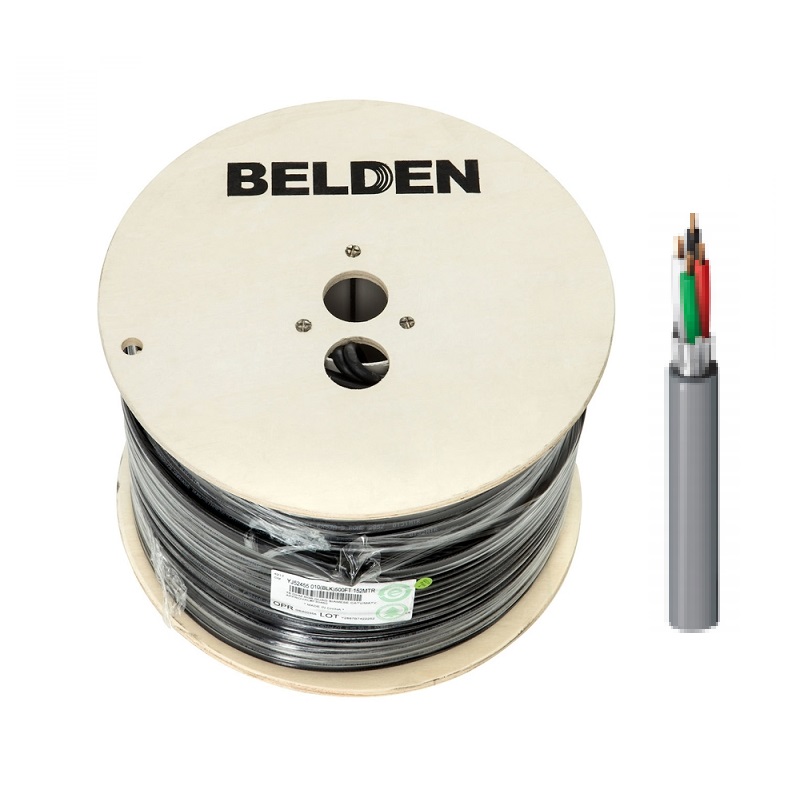 Belden 5302FE 4 Core -18 AWG BC, PP/PVC, Foil Shielded, Security And Commercial Audio Cable, Riser-CMR, 4-18 AWG stranded bare copper conductors with polypropylene insulation, Beldfoil® shield and PVC jacket with ripcord.