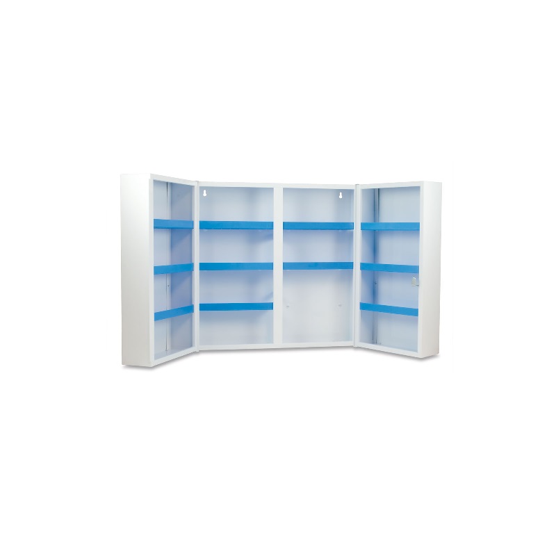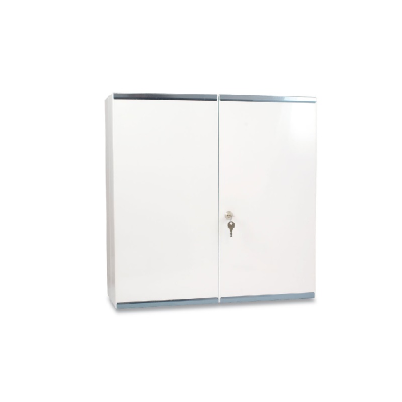 Budapest 215 First Aid Double Door Metal Wall Cabinet to end storage problems in First Aid rooms and similar environments with these strong enameled and locking metal wall cabinets. supplied with a set of two keys, this cabinet will provide a safe and secure home for an emergency or backup first aid products. Finished in a hard-stove and clinical white enamel, not only do these cabinets look smart, but also offer security, protection and, in the case of the Budapest, the ultimate in space and versatile internal storage with refrigerator style shelves incorporated into the doors