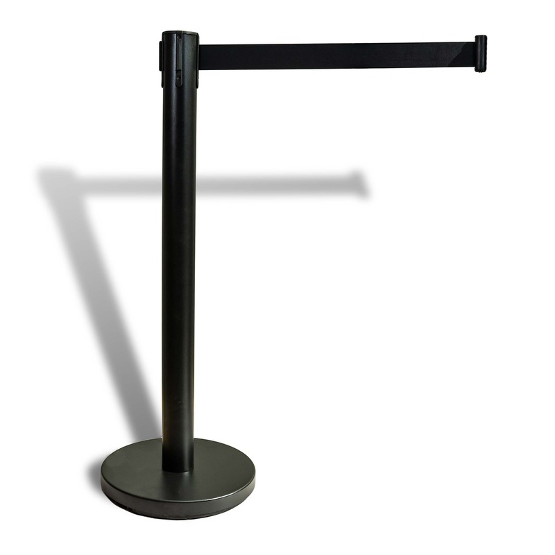 CH 420ST Black Belt Steel Barrier – These retractable barriers are made from a high quality steel and finished in Matte Black. Each retractable barrier has a 2m nylon belt that retracts into the post after being released. With our unique locking clips, you can lock the belt so that people cannot unlock them. These retractable barriers are the cheapest option for queue management for banks, trade show, hotels and retail stores.