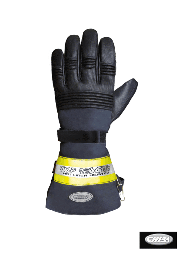 Firefighters glove in accordance with EN 659: 2008 – finger glove made of hydrophobic, heat-resistant cowhide Nappa leather with split leather cuff (adjustable by a strap with Velcro). the cuff is sewn with a yellow, flame – resistant, 50mm reflective stripe. Inner glove made of 100% Twaron. All seams are done with Kevlar thread.