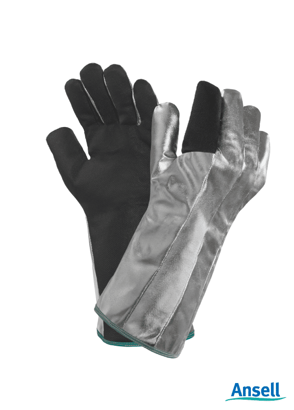 Ansell Cut and Sewn Kevlar Fetl lining Fully impreganted finishing Gaunlet cuff Silver and Black Colour 400mm length. This is only Available in Size 11.