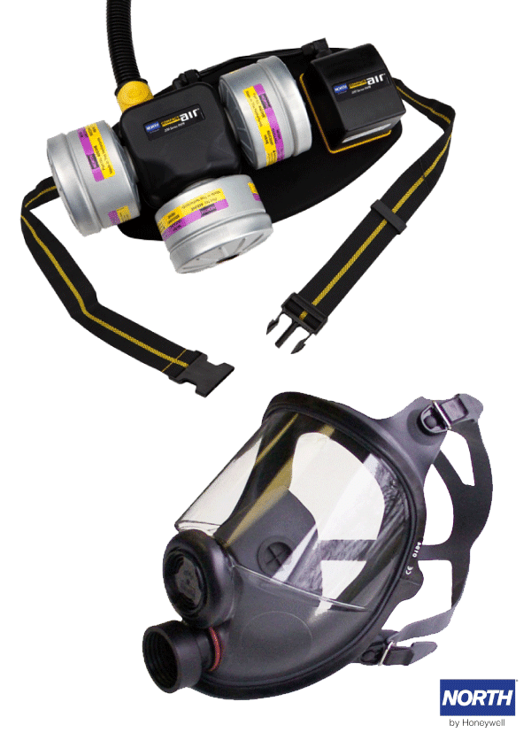 Triple alarm system creates an audible, vibratory and visual alarm to warn workers of battery life and or filter clog. Vibratory alarm can be felt even through welding jackets; warns workers who are hearing impaired or in hign noise environments. Two visual alarms:one for low battery and separate one for a clogged filter; workers will known the alarm reasons and maintain the PAPR. Airflow is automatically adjusted to meet OSHA and CSA CFM.