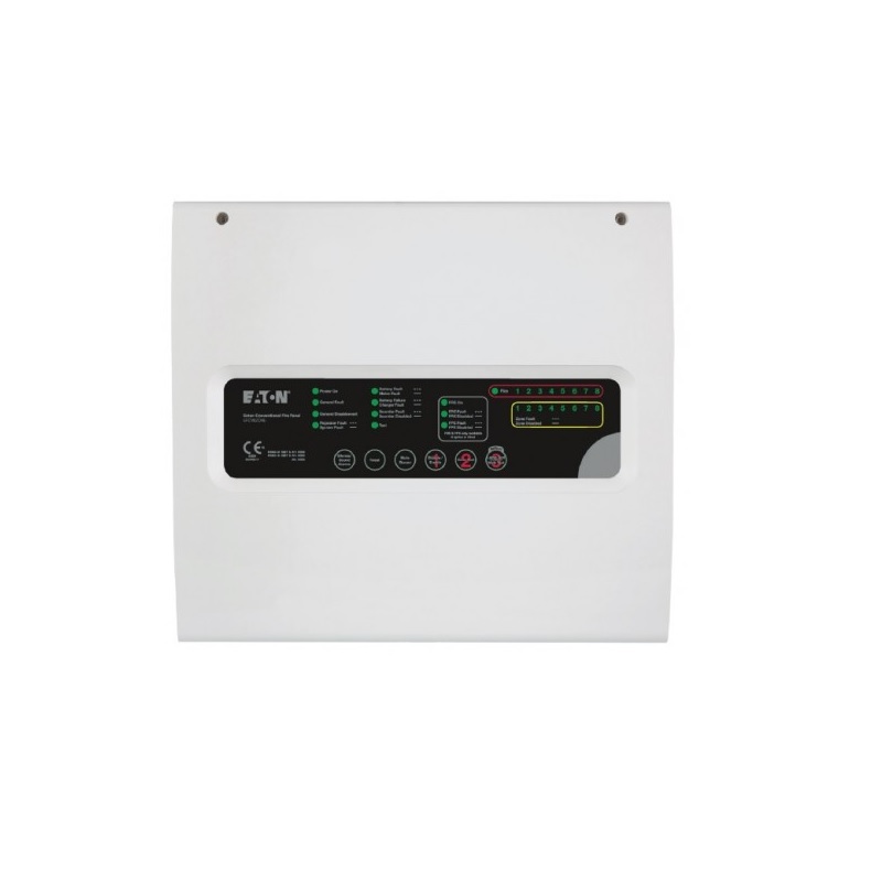 Eaton EFCV8Z-NB 8 Zone Conventional Panel Eatons 8 zone conventional fire system panel delivers a straightforward, intuitive interface that makes programming and maintenance simple. Approved to EN54-2&4, it offers a comprehensive set of functionalities in a modern, robust and discreet enclosure. Its appearance and performance make the panel well suited for life safety notification in a wide variety of small to medium sized buildings, particularly schools, warehouses, retail stores and office buildings.