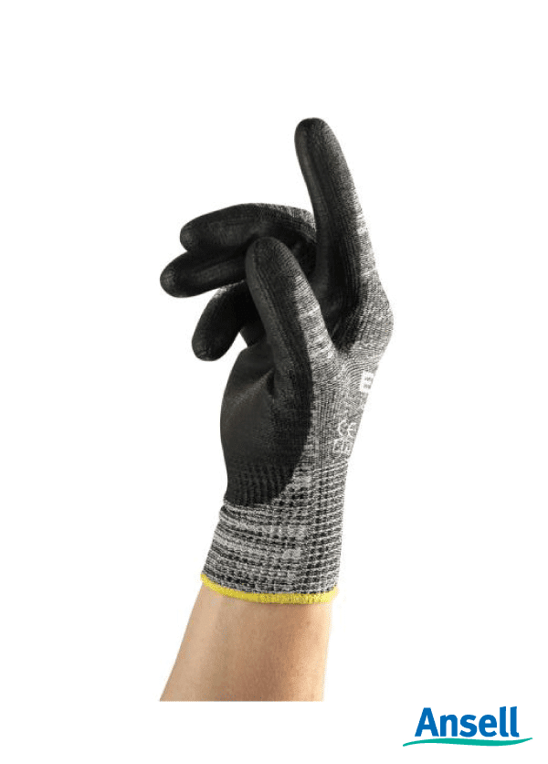 Ansell, Edge, Polyurethane HPPE Nylon Spandex Knitted, Knitwrist cuff, Palm dipped, 220-270mm length Black and White