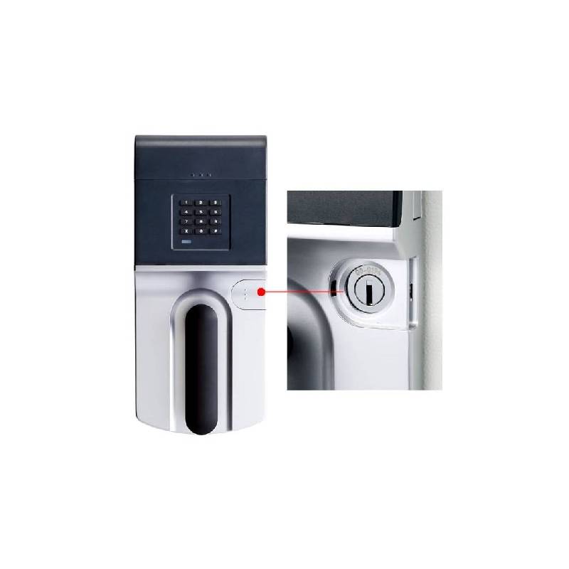 Eiko OSS-E safe is equipped with an automatic rod mechanism that secures the handle when opening and prevents it from protruding unnecessarily. Prevents damage to the enclosure when closed in a crank due to malfunctions. Equipped with Digital lock + key lock system. Personnel codes of 1-10 digits can be registered. Built-in cylinder Key lock which enhances the security as a dual locking system.