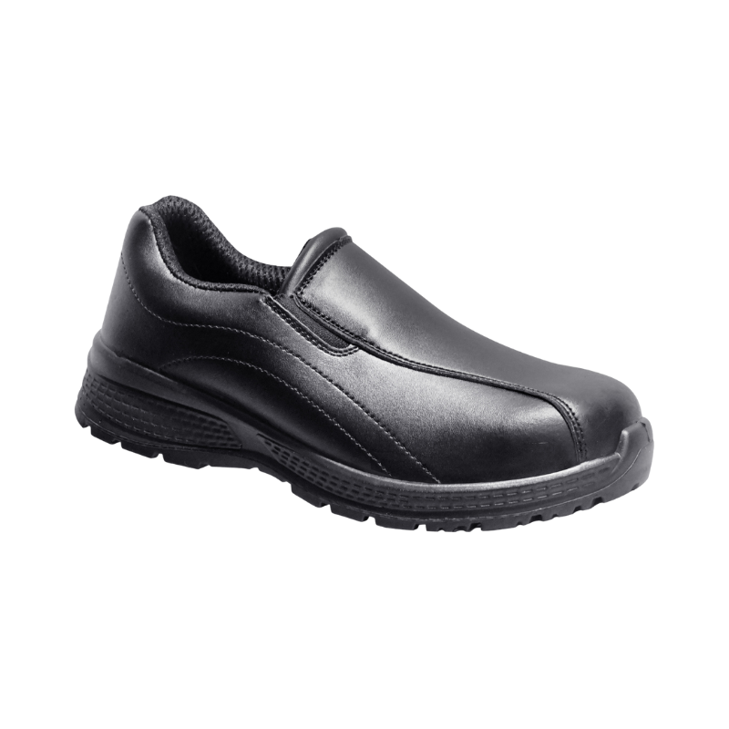 Unisex slip-on executive safety shoes with non-metallic composite toe and Kevlar midsole