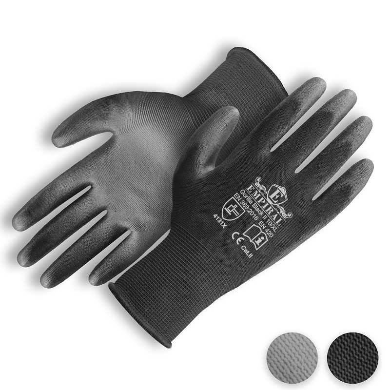 Empiral E101573021 Gorilla Black I Polyester Liner with Black PU Palm Coated Gloves Large