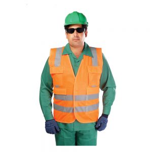 Empiral Safety Vest Glitz-Orange / Glitz-Yellow reflective high visibility vest knit mesh zipper-type 100% polyester fluorescent fabric with 2 vertical & 2 horizontal HI-VIS reflective tapes. Velcro Enclosure. Tape: 5 CM HI-VIS reflective tape, weight: 110 GSM, color: fluorescent yellow &Â fluorescent orange, pockets: without pockets, size: S – 4 XL, standard-class 2