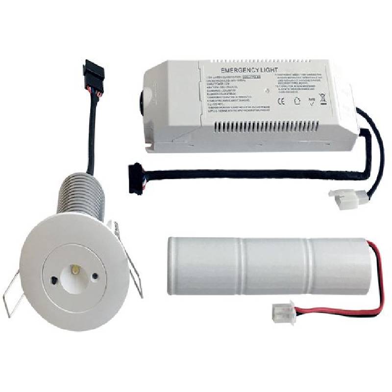 Escalux emergency luminaire 3.1W LED recess mount 1P20 self contained with 3hrs battery backup. Polycarbonate body and lamp head. Uses highly active LED light source. High brightness, Long Life. Easy installation and maintenance. Rated to IP20.