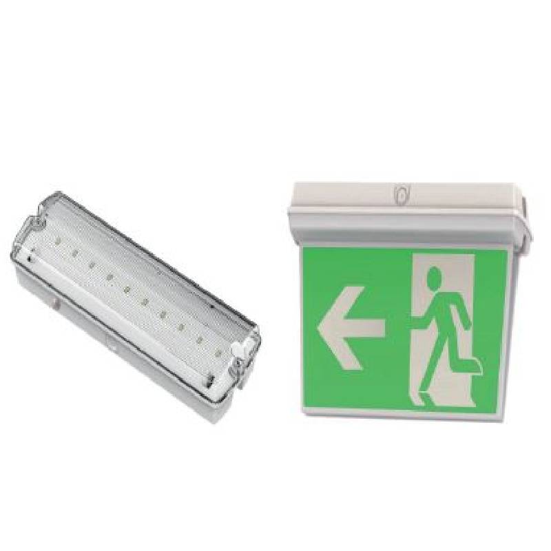 Escalux exit luminaire LED surface mount 4WIP65 self contained with 3hrs barrery backup. High precision moulded housing made from fire retardent ABS housing. Uses highly active LED light source. High brightness, Long life. Easy installation and maintenance. Rated to IP65. Can be used as emergency luminaire & exit luminaire.