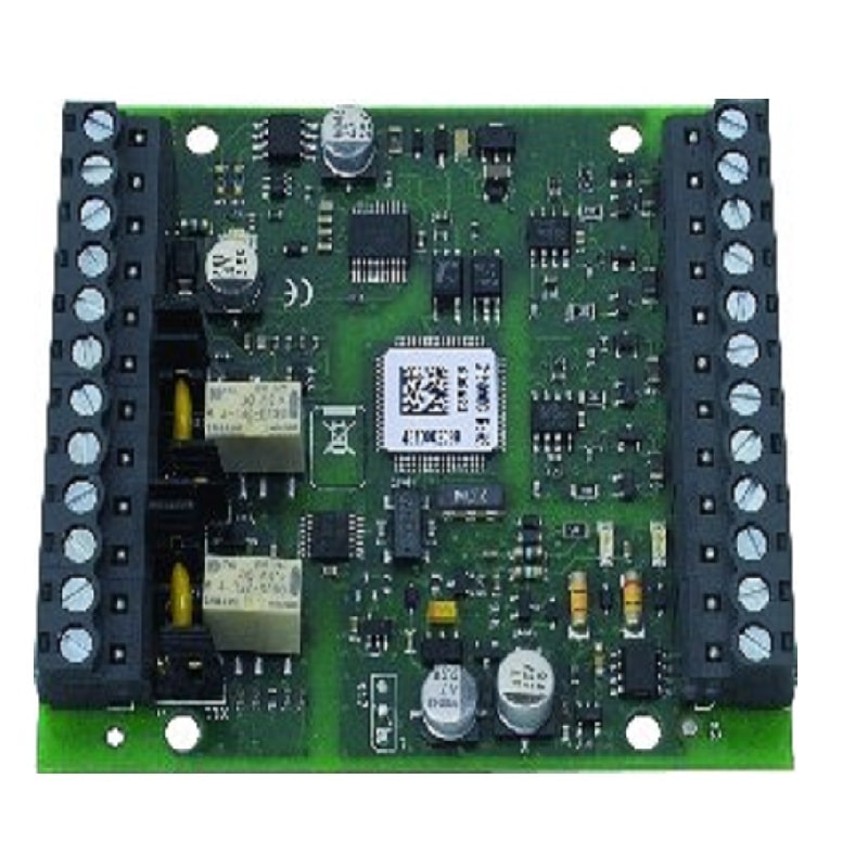 Esser Alarm Transponder, 4 IN/2 OUT with Isolator functions as a device on the multi-functional primary line. The connection of four zones with automatic standard detectors, manual call points (non-addressable) as well as special detectors is possible. In addition, two programmable relay outputs are also available. Both relay outputs of the transponder may be used to reset a connected third-party detector. The reset function relates to the corresponding special detector, e.g. by switching the appropriate input to GND or by a short interruption of the detectors supply voltage.