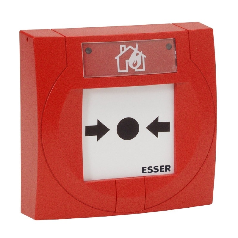 Esser 804971 Manual Call Point suitable for esserbus and powered loop connection, with soft address coding, alarm latch and alarm indicator. Conventional detectors can be connected to input of the MCP. Without BUS communication, the detector operates as conventional MCP. Detector housing is included.
