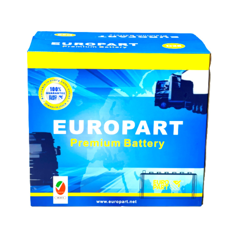 12 V, filled and charged The wide range of EUROPART starter batteries for trucks and cars stands out particularly not only thanks to its excellent price-performance ratio but also through good start-up power, low water consumption, universal application possibilities, load capacity, long service life and reliability. It goes without saying that the quality requirements of EUROPART starter batteries comply with general DIN/EN standards. Circuit : 3 Cell type 1