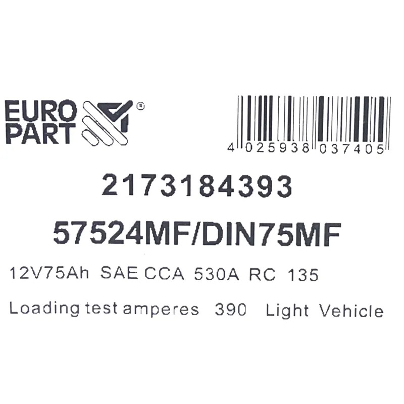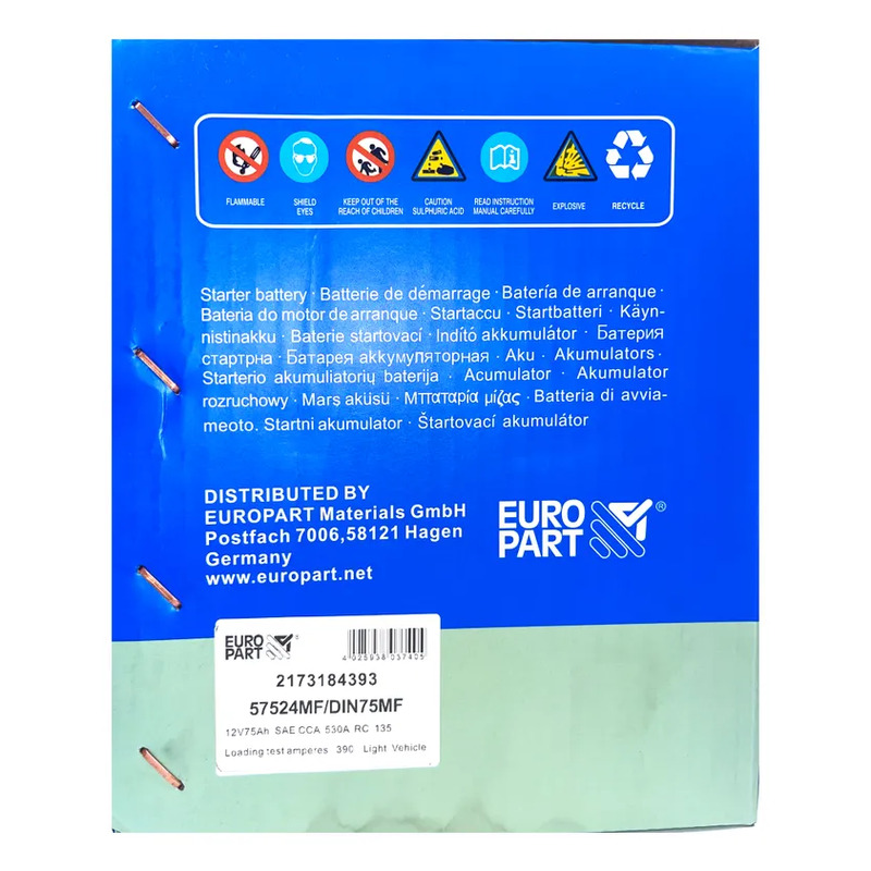 Europart – MF Car Battery 12V 75Ah 57524LMF / 75Din