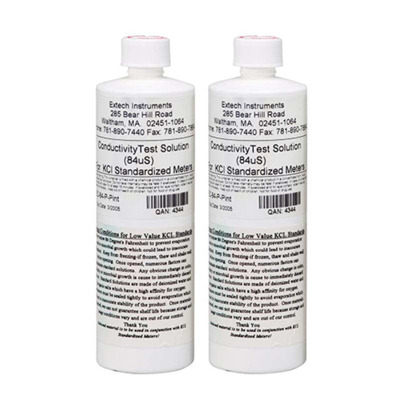 Extech EC-12880-P are two bottles of 12880µS Conductivity Standard, 1 pint each of premade solution. EC-12880-P is for use with Extech Conductivity meters like the EC400 ExStik Conductivity/TDS/Salinity Meter or DO610 ExStik II DO/pH/Conductivity Kit.