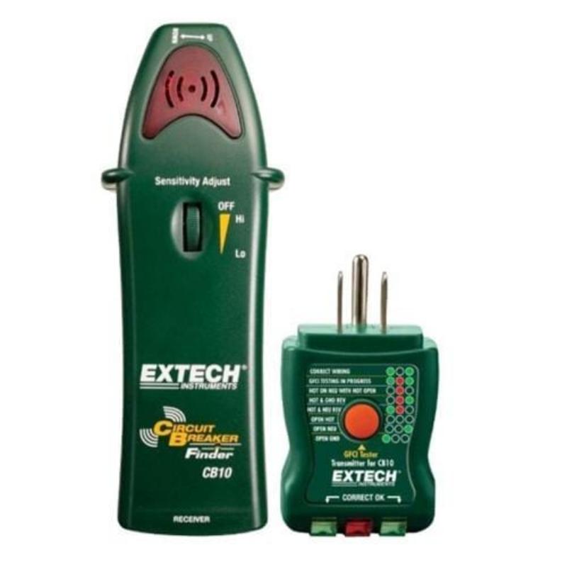 The CB10 is an AC Circuit Breaker Finder/Receptacle Tester that locates circuit breakers and tests receptacle wiring. The CB10 allows the user to quickly locate 110 Volt to 125-Volt AC circuit breakers and fuses with audible and visual circuit breaker indication. The product also features a variable sensitivity adjustment to pinpoint correct circuit breaker. This product is complete with a year warranty, the receiver and GFCI transmitter and a 9V battery for the receiver.