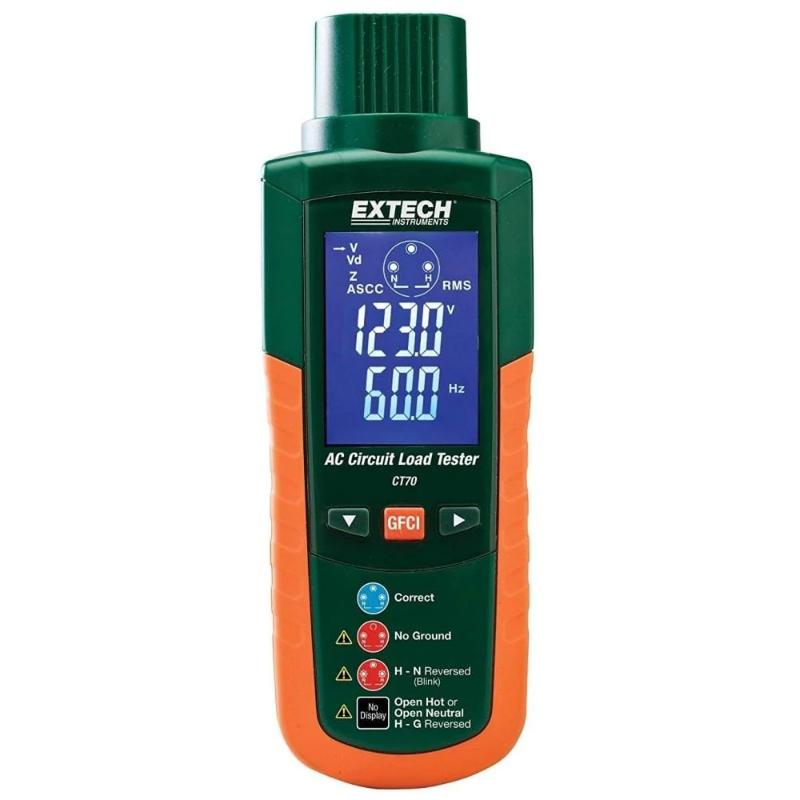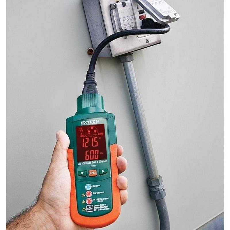 Circuit and wiring issues can introduce shock hazards (from grounding issues) and can compromise performance of machinery and equipment (from poor ground impedance, lack of sufficient voltage under load and/or high ground-to-neutral voltage). The CT70 is a GFCI and AC Circuit Analyzer which covers outlet load handling and outlet tester functions.