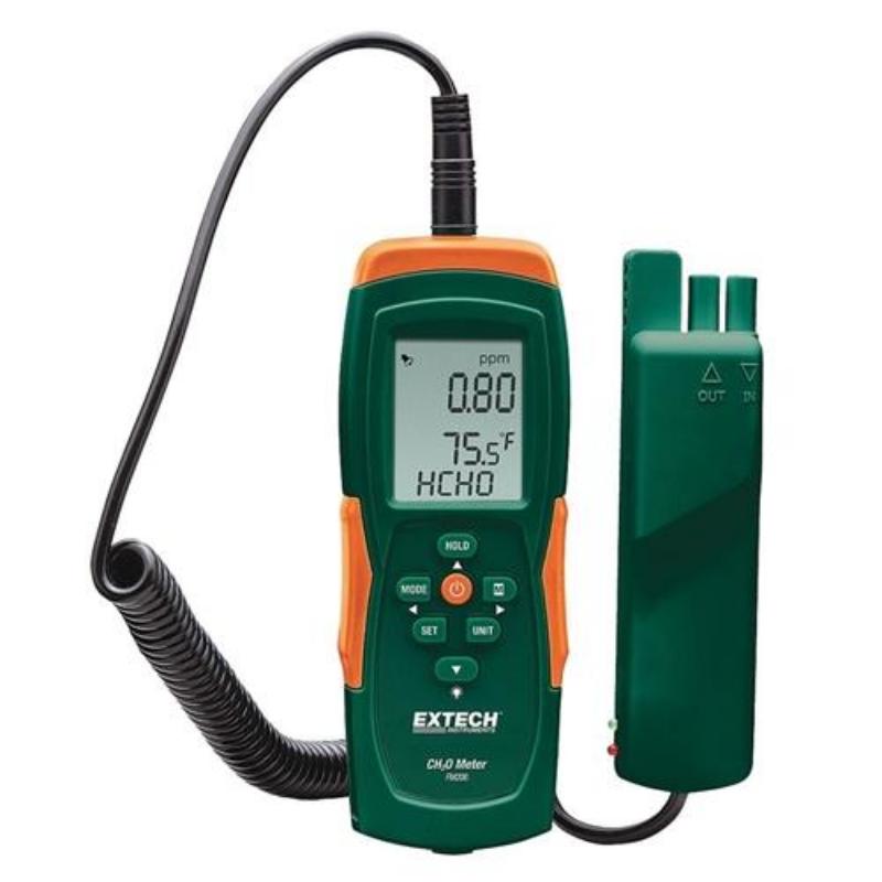 The FM200 is a handheld Formaldehyde meter with a detachable probe. Meter simultaneously displays Formaldehyde concentration, Air Temperature, and Relative Humidity readings on a large LCD backlit display. The FM200 features CH?O Calibration function in fresh air, Min/Max, Data Hold, Auto power off and Low battery indicator functions. Comes complete with a soft tube, sensor with 2.1ft cable, 6 AAA batteries, a user’s manual and carrying case.