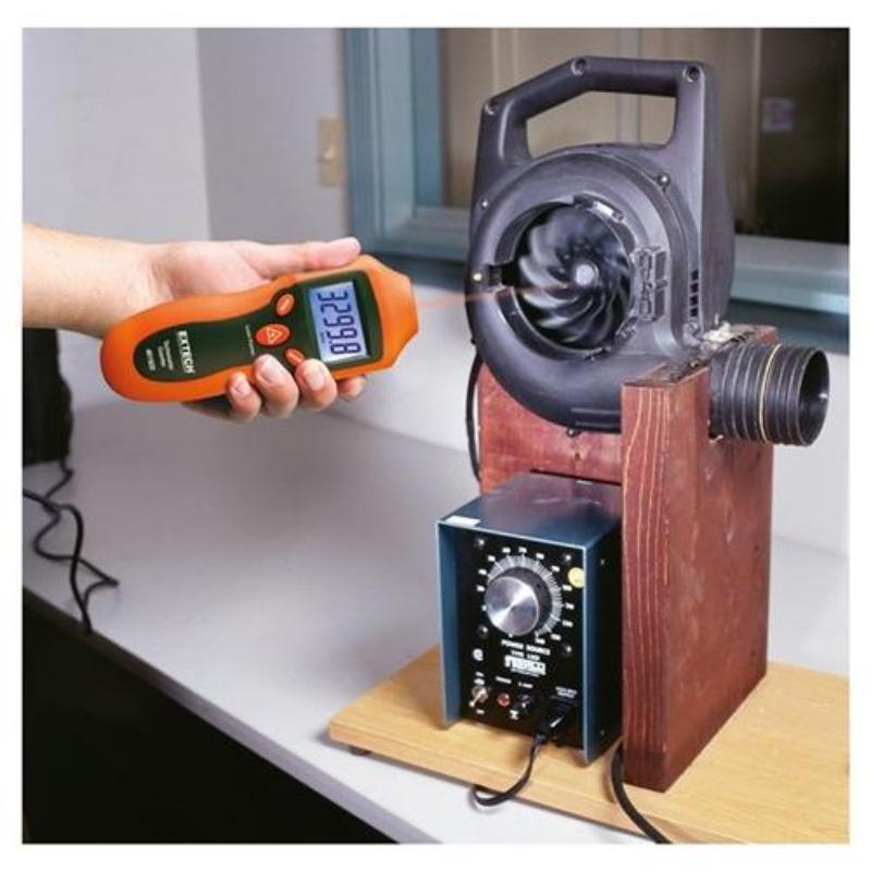 Extech’s 461920 is a tachometer for RPM measurements. Make safe, non-contact RPM measurements (2 to 99,999 RPM) of rotating objects by pointing the integral laser (1.6-ft. target distance) at the reflective tape placed on the object to be measured. Complete with 9-Volt battery, reflective tape and user manual.