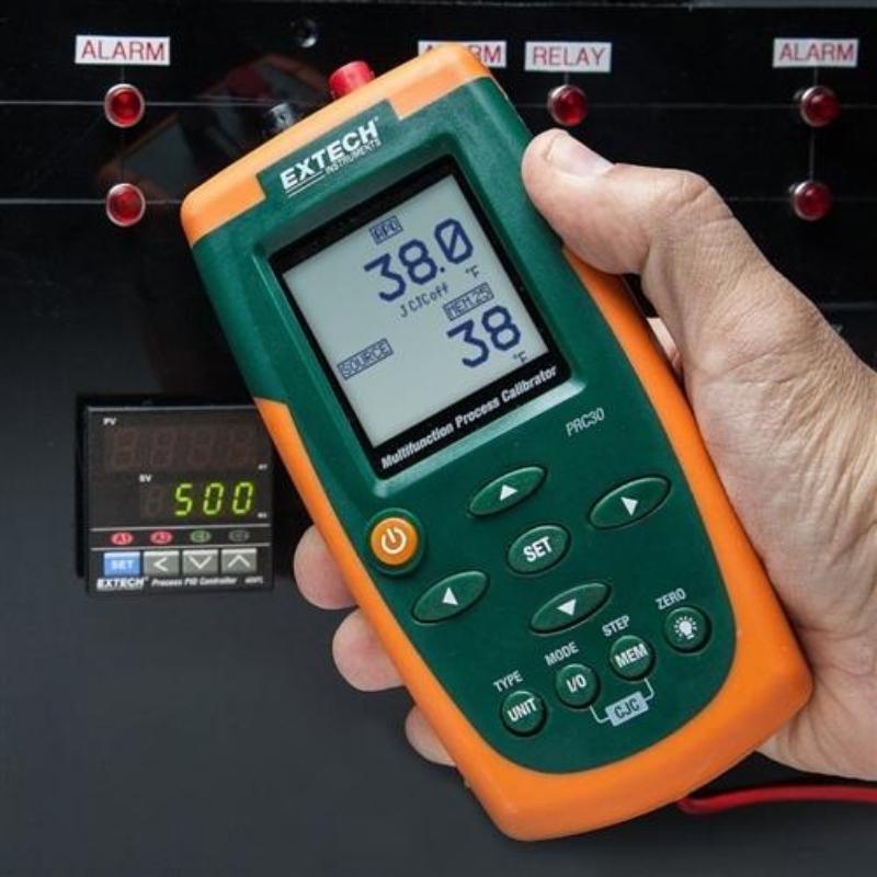 The PRC30 is a Multifunction Process Calibrator. This calibrator provides precision sourcing and measurements for thermocouples (eight types), current (mA), and voltage (mV and V) devices. Featuring 24 volt loop power, five user adjustable calibration presets, and temperature output in Fahrenheit, Celsius, and millivolts. Product includes test leads, alligator clips, thermocouple calibration cable, universal calibration cable, 100-240V AC universal adapter with 4 plugs, AA batteries, hard case, and user manual.