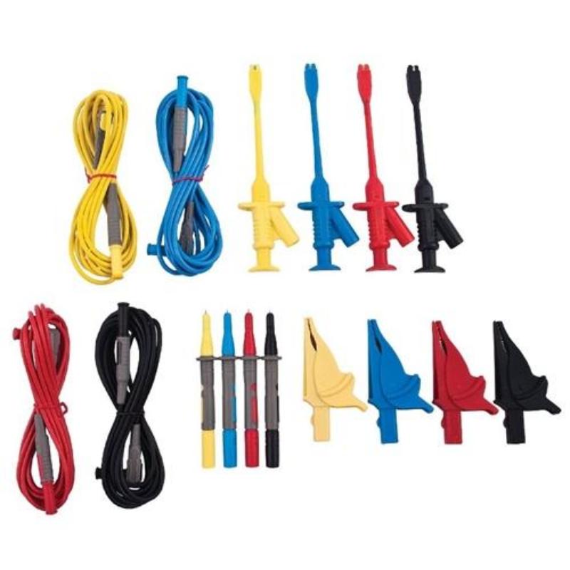 The PQ1000 is a CAT IV Test Lead Accessory Kit For PQ3400 series power analyzers. Includes a set of 4, 10ft test leads (black, red, blue, yellow) with shrouded banana plugs on both ends (right angle on one end). Includes Test probes, alligator clips, long reach spring loaded clips.