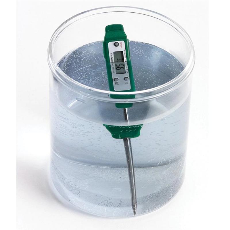Extech’s 39240 is a waterproof stem thermometer. This stem thermometer is pocket sized with a digital display featuring 0.1° resolution and min/max recording. It measures temperature in frozen solids and liquids using the 2.75 in. (70 mm) stainless steel stem. Temperature measurements from -40 to 392°F (-40 to 200°C). MAX/MIN recall of high and low temperatures as well as Data Hold and Auto power Off features. Complete with one LR44 button battery and protective cover.