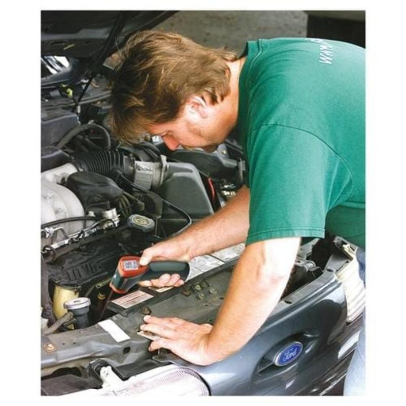 The 42510A Compact thermometer measures temperature from -58 to 1200 degrees F (-50 to 650 degrees C) with 0.1 degree resolution for readings up to 999.9 degrees. Adjustable High/Low set points with audible alarm alerts user when temperature exceeds the programmed set points. Adjustable emissivity for better accuracy on a variety of surfaces. Built-in laser pointer identifies target area. Backlighting illuminates display for taking measurements at night or in areas with low background light levels. 12:1 distance to target ratio. Data Hold and Min/Max, Over range indicator and Auto power off functions. Complete with 9V battery and pouch case.