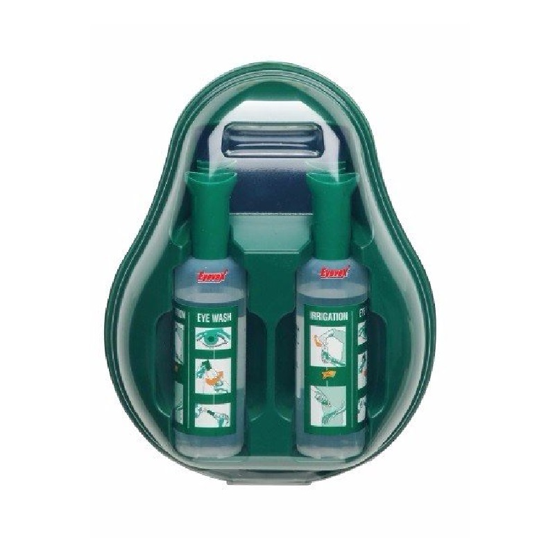 Eyevex EEBS 1000 Portable Eyewash Station Contains the necessary items for an efficient First Emergency eyewash. The anatomic Eye Cup allows you to direct the solution jet correctly, obtaining an efficient eyewash without any waste. It Can be easily wall-mounted with screw and plugs, supplied in the kit.