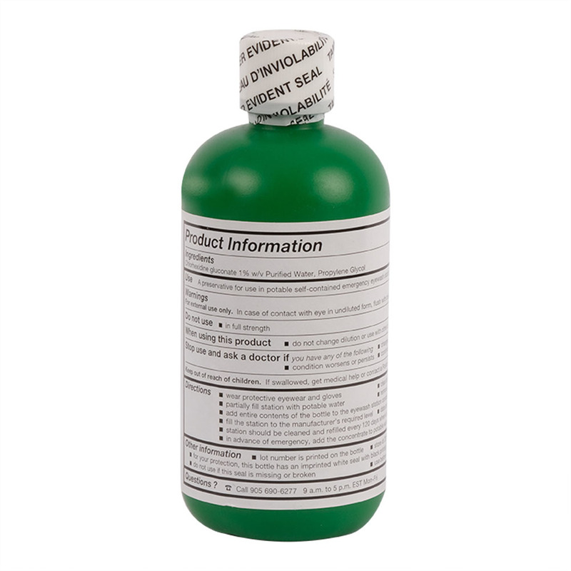 Eye wash solutions and preservatives are used with eye wash stations to safely wash and flush eyes. Preservatives control bacteria levels to keep eye wash water and fluid clean. Eyewash station additive helps keep your eyewash station clean by preventing the the growth of bacteria and other impurities.