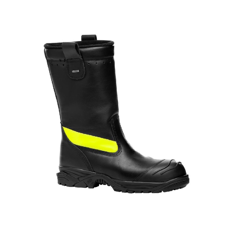 FAL FIRE GTX High Safety Firefighter Boot for Fire fighting use. Full black grain leather fire and water-resistant (No water penetration in 180 min), breathable (Water vapour coefficient > 70 mgrs/cm2 ) and great abrasion resistance.