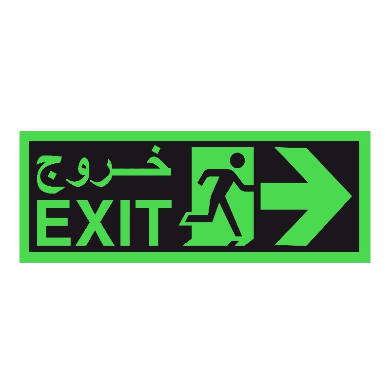 Fire Exit Sign Right Arrow Self Adhesive Sticker is designed to identify escape routes in a fire emergency. Rectangle shape with a white pictogram on a green background. Easy to apply.