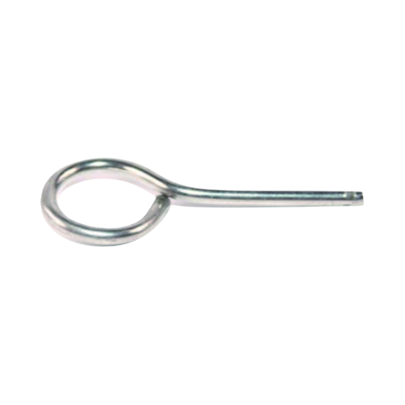 Medium-size steel safety pull pin compatible with most portable fire extinguishers, designed to prevent accidental discharge.